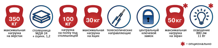 Верстак Profi (№ 109) WT100.F1/F1.100Артикул: 36364Нет в наличии 26 300 Р 18 910 РЭкономия: 7 390 Р Верстак Profi (№ 109) WT100.F1/F1.100 теперь в вашей корзине покупок ОписаниеХарактеристикиОтзывыДокументацияДоставкаОплатаОписаниеВерстак Profi (№ 109) WT100.F1/F1.100 Металлические слесарные (столярные) верстаки серии W предназначены для удобной организации рабочего места на производстве, в учебных заведениях, мастерских и гаражах. Нажмите, чтобы увеличить картинку Столешница верстака изготовлена из МДФ толщиной 24 мм, покрытой оцинкованным листом металла толщиной 1,2 мм. Под столешницей установлена Полка и Стенка WSh-160/2 с максимальной распределенной нагрузкой 100 кг. Верстак окрашен порошковой краской, способной выдерживать длительную температурную и механическую нагрузку. Цвет покрытия корпуса серый шагрень (RAL 7038). Подвесной ящик WD-0, который крепится на верстак или устанавливается на тумбы с целью образования модуля хранения. Нагрузка на ящик WD-0 30 кг. Опция для верстака: экран с толщиной металла 1,2 мм, квадратной перфорацией 10х10 мм, шагом 38 мм. Нагрузка на экран 50 кг. Опция для экрана: светодиодное освещение с мощностью 11 Вт, световым потоком 880 лм, цветовой температурой 4000 К. Верстак поставляется в разобранном виде. Нажмите, чтобы увеличить картинку Базовая комплектация: Столешница WT-100 – 1 шт. Опора PROFI WF-1 – 2 шт. Полка и Стенка WSh-160/2 – 1 шт. Ящик Profi WD-0 – 1 шт. Дополнительные опции: Комплект косынок для крепления экранов WS – 1 шт. Комплект освещения W – 1 шт. Кронштейн крепления двух экранов WS (2 шт.) – 1 шт. (если нет освещения) Экран WS-100 (без косынок) – 1 шт. или 2 шт. (количество зависит от выбранной модели) Дополнительные аксессуары на экран для инструментов: Помогают удобно организовать рабочее место Нажмите на картинку, чтобы посмотреть все дополнительные аксессуары на экранХарактеристики Внешние размеры (ВхШхГ)880 × 1000 × 700 мм Макс. нагрузка на верстак, кг350 Макс. нагрузка на полку, кг100 Макс. нагрузка на ящик30 кг Тумба 1отсутствует Тумба 2отсутствует Кол-во ящиков2 Вес113 кг Гарантия1 год ПроизводительПРОМЕТ (Россия) Отзывы посетителей(0)Оставьте отзыв об этом товаре первым!ДокументацияДоставкаСамовывоз в Ярославле Вы можете самостоятельно забрать приобретённый товар со склада по адресу: г. Ярославль, ул. Тутаевское шоссе, д. 6. Отгрузка товара производится только после предварительного согласования с менеджером, оформлявшим заказ. Доставка по Ярославлю и области При сумме заказа более 20 000 рублей доставка в черте города – бесплатно. Стоимость доставки по области рассчитывается менеджером индивидуально. Доставку осуществляем в течение 3-х рабочих дней (в зависимости от загруженности логистической системы), чаще всего — на следующий день после оформления заказа. Доставка осуществляется до подъезда без выгрузки и подъема заказа. Стоимость разгрузки (подъёма) товара в квартиру/офис оплачивается дополнительно согласно таблице: Вес, кг Подъём на 1 этаж Подъём на 2 этаж (без лифта) Подъём выше (без лифта) до 35 кг 400 700 300 руб/этаж от 35 до 50 кг 500 900 400 руб/этаж от 50 до 100 кг 900 1400 500 руб/этаж от 100 до 150 кг 1200 1800 600 руб/этаж от 150 до 200 кг 1500 2350 850 руб/этаж от 200 до 250 кг 2700 4050 1350 руб/этаж от 250 до 300 кг 4200 6300 2100 руб/этаж от 300 до 350 кг 4700 7050 2350 руб/этаж от 350 до 400 кг 6700 10050 3350 руб/этаж от 400 до 450 кг 7700 11550 3850 руб/этаж от 450 до 500 кг 9200 13800 4600 руб/этаж от 500 до 550 кг 10500 15600 5100 руб/этаж от 550 до 600 кг 13500 19600 6100 руб/этаж от 600 до 650 